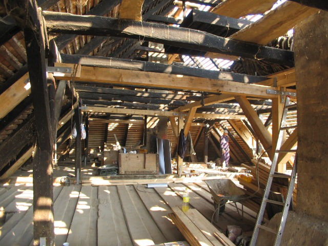 Drvena stambena etaža organizirana je kao trosobni stambeni prostor.Raspored prostorija zadržan je u izvornom obliku. Dvije postojeće sobe na jugu,uz manje intervencije,ostale su iste i čine intimni dio stana. Taj je prostor hodnikom odijeljen od prostora za dnevni boravak ,nastalim objedinavanjem sviju prostorija.Na sjeveroistočnom pročelju zamjenom postojećih prozora ostakljenim vratima,omogućilo se otvaranje prostora prema trijemu i vanjskom terenu, koji je na toj strani kuće nešto niži od nivoa poda.